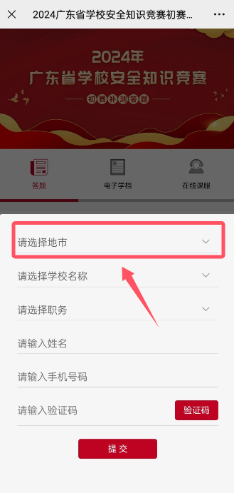 2024广东省学校安全知识竞赛初赛补测答题操作指南